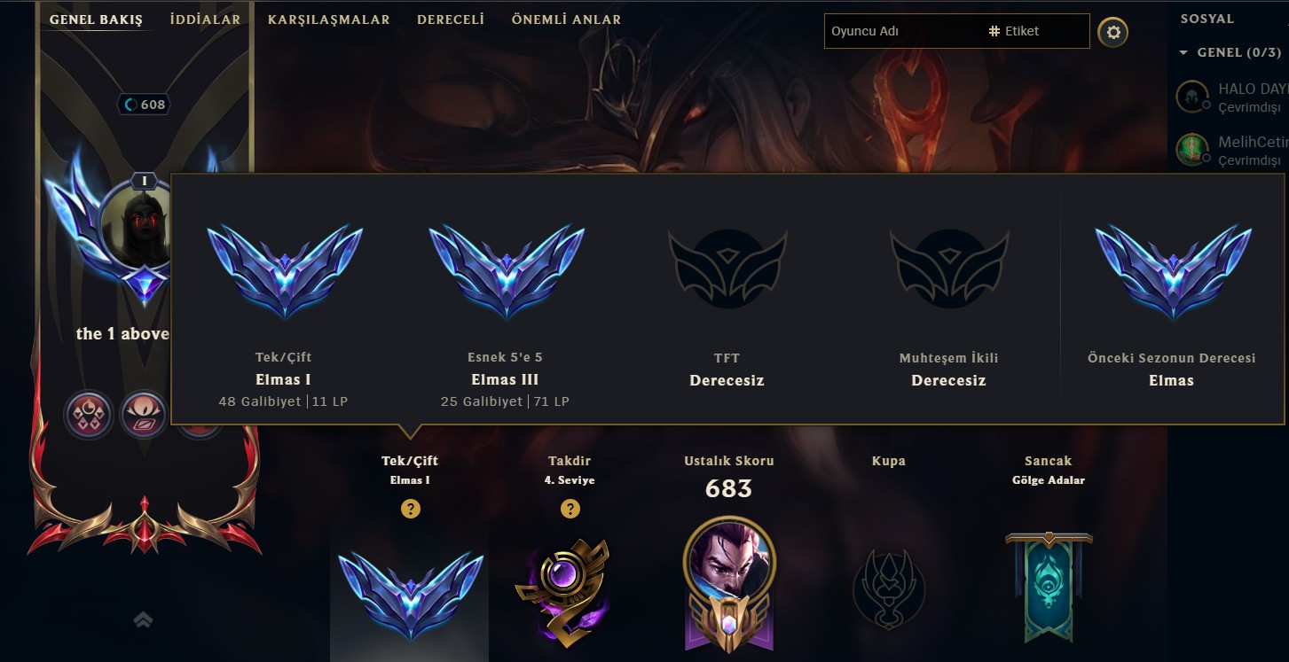 Hesap hakkında detayları buradan öğrenebilirsiniz... Hesap boost işlemleri için mesaj atabilirsiniz.