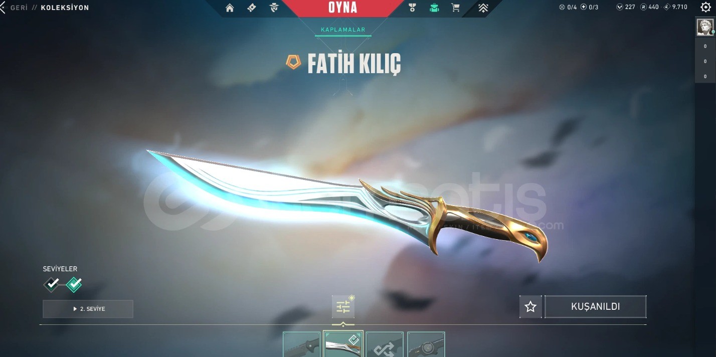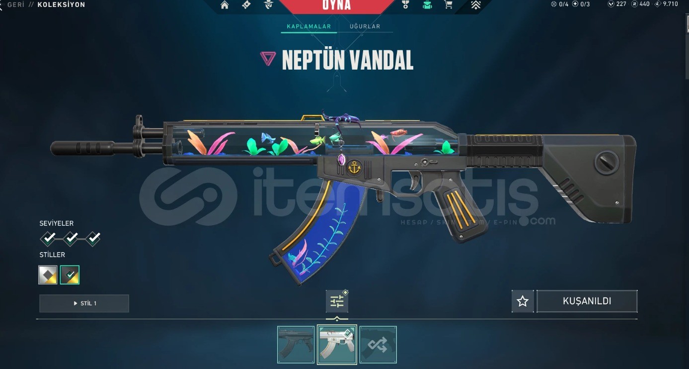 Hesapta 21 skin olmak üzere Neptün Vandal yağmacı specter fatih kılıç ve bir çok skin vardır 158 seviyedir